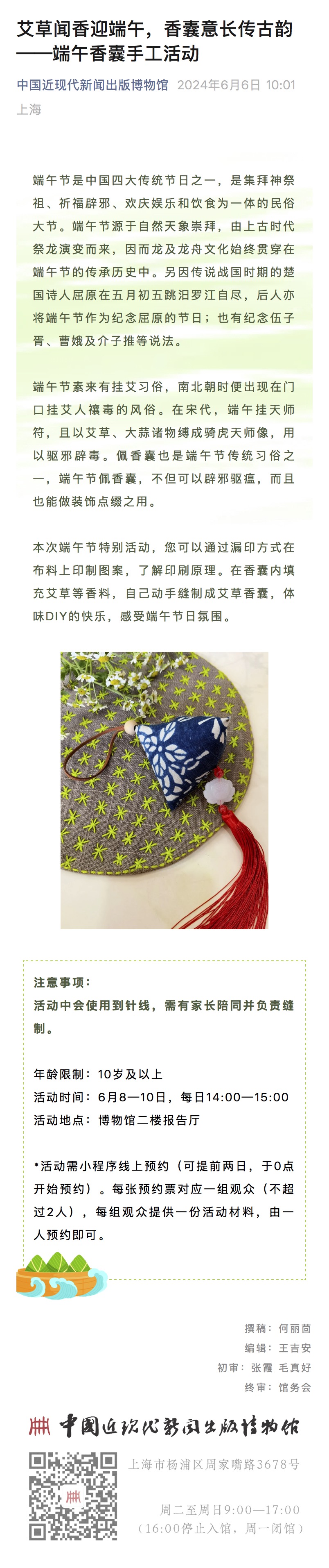 艾草闻香迎端午,香囊意长传古韵——端午香囊手工活动
