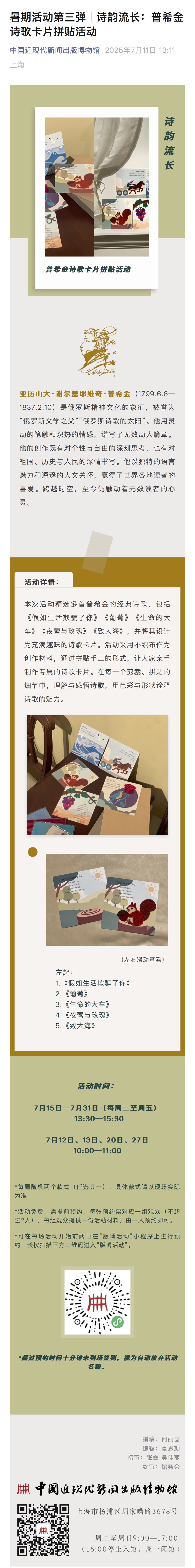 暑期活动第三弹 诗韵流长:普希金诗歌卡片拼贴活动