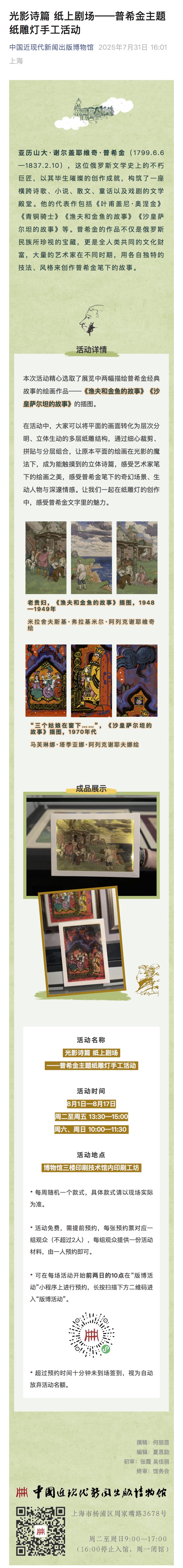 光影诗篇 纸上剧场——普希金主题纸雕灯手工活动
